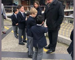 Un momento emotivo de la jornada se produjo cuando un grupo de alumnos de Junior School se acercó espontáneamente al nuevo rector en un cálido gesto de bienvenida, frente a lo cual Mr. Gregor Polson se mostró gratamente sorprendido.