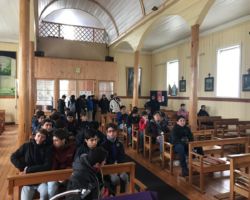Comenzamos con un soleado día a orillas del río Valdivia, en Casa Zenta Meyer, en Isla Teja. Luego de una interesante clase de geografía donde pudimos conocer sobre la Red Fluvial de la zona, salimos rumbo a la Bahía de Corral, para conocer el Museo de Sitio Castillo de Niebla, donde un “corsario” nos guió en la visita relatándonos la historia e impacto que el lugar tuvo durante el proceso de conquista.