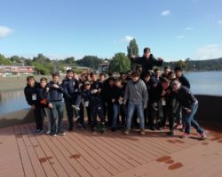 Nos levantamos por primera vez un poco más tarde de lo habitual, nos bañamos y tomamos desayuno, preparamos los bolsos y la mochila para tomar rumbo a Frutillar y luego Valdivia. Bajamos los bolsos y partimos con emoción a Frutillar. El viaje no fue tan largo como los anteriores. Cuando llegamos a Frutillar cada generación se sacó una foto afuera del Teatro del Lago. Después nos dieron agua y entramos al teatro. Allí nos enseñaron casi todas las partes del teatro pero la que más me gustó fue la sala del tronador. Luego de eso fuimos a ver un museo donde estaban las casas de los primeros Colonos Alemanes en Frutillar. Eran tres casas y un establo. Las casas estaban hechas de madera y cada casa tenía su propio diseño de tejuela. Luego fuimos a almorzar a un restorán. La comida estaba deliciosa. Comimos chuletas con papas y un helado de postre. Después de almorzar nos dieron 1 hora libre para hacer cualquier cosa. Yo me compré unos calcetines de lana. Cuando se terminó la hora fuimos a una cancha de baby fútbol donde hicimos 6 equipos y jugamos por tiempos o goles. Estuvimos jugando por más de 2 horas baby fútbol. Cuando terminamos nos dieron agua y nos cambiamos de ropa. Luego nos subimos al bus y partimos en un viaje de 3 horas a Valdivia. Llegamos, comimos y nos ubicamos en nuestras respectivas piezas. Finalmente le tocó a mi grupo debatir sobre el tema de la prevención ante los desastres naturales en el Sur de nuestro país. Cuando terminamos, nos fuimos a las piezas a dormir .