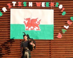 El pasado Miércoles 18 en la mañana, la totalidad del colegio se reunió en el Patio Cívico como punto de partida de la celebración. Al son de la gaita se dio comienzo a la Asamblea. El Jefe del Departamento de Inglés, Sr. Alfredo Calderón, dio el discurso inicial que mencionó, entre otras cosas, algunos datos interesantes que pocos sabían sobre Gales, además de las diferentes actividades de la semana. Para finalizar, los alumnos de III Medio Agustín Ferreira y Alejandro Larraín entonaron la canción “Let It Be” de The Beatles, motivando a la comunidad a participar de la celebración.