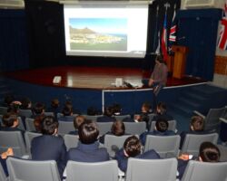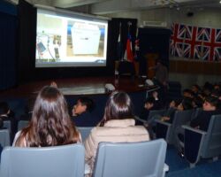 En el marco del estudio de la unidad de indagación “Replace what we take”, los alumnos participaron del proyecto final conocido como Exhibición. El proceso se contextualizó en el tema transdiciplinario “Sharing the planet” y la idea central del proyecto hizo referencia al cómo las acciones humanas impactan nuestro planeta y sus recursos naturales. Se abordó con énfasis el tema del agua en la Tierra, sus problemas y pronóstico si no cuidamos el recurso. Por esta razón, el pasado miércoles 5 de septiembre los alumnos de quinto básico recibieron al ex-alumno Alfredo Zolezzi Campusano, quien mediante una educativa y motivadora charla expuso algunos de los desafíos que enfrenta la sociedad debido a la escasez de agua potable en el mundo.