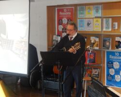 Profesores también presentaron sus trovas, poemas, canciones e interpretaciones musicales, mientras los asistentes al evento escribieron versos para construir acrósticos con las letras P, O, E, S, I y A.