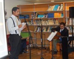 Profesores también presentaron sus trovas, poemas, canciones e interpretaciones musicales, mientras los asistentes al evento escribieron versos para construir acrósticos con las letras P, O, E, S, I y A.