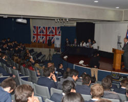 El primer expositor fue nuestro Rector Sr. Gregor Polson, el cual se refirió a las distintas formas en la cual todos participamos de un mundo globalizado en el cual usamos similares códigos de comunicación, formas culturales en un mundo que vive interconectado permanentemente y aun así hay también aspectos que nos cuesta asimilar de otras culturas. Utilizando la analogía con un iceberg dio cuenta de lo que significa lo que está bajo la línea del agua, aquellos formas más importantes y cuyos elementos culturales son los que requieren de una cabal comprensión para la integración.