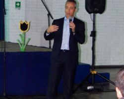 Posteriormente, don José Luis Murillo, su padre y gerente de la emprese de aguas ESVAL, se refirió a la importancia del cuidado y preservación del agua, su uso, costo, entre otras cosas, informando a todos los asistentes respecto a la producción y distribución de este preciado líquido a todala población de la Quinta Región.