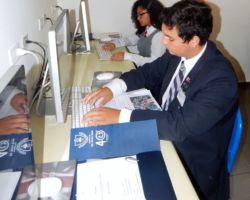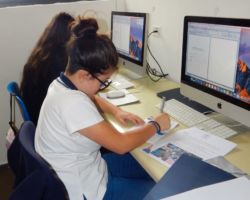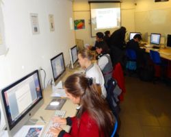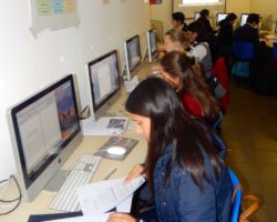 Luego, llegó el momento de la competencia. Los alumnos subieron a los laboratorios MAC y tuvieron dos horas para crear textos narrativos en inglés basados en diferentes estímulos, entre los que se incluían imágenes, elementos y oraciones que debían ser incorporadas en sus micro-relatos.