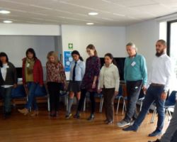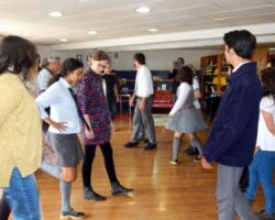 A continuación, profesores y alumnos disfrutaron de un entretenido taller de danza irlandesa que se llevó a cabo en la Biblioteca, dirigido por el grupo de baile Celta Laitale. Para muchos, lo mejor de la jornada. ¡Todos terminaron bailando!