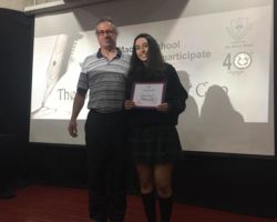 Luego de esta actividad, alumnos y profesores compartieron un rico almuerzo, para luego ser dirigidos al Auditorio, donde se dieron a conocer los ganadores. El primer lugar lo obtuvo la alumna María Jesús Kurth de Santiago College, mientras que el segundo lugar fue de la alumna Nayantara Ranganatha de Craighouse. Nuestro Mackayino José Ignacio Comas se adjudicó el tercer lugar, en una competencia durísima donde el nivel de textos de los alumnos fue muy alto.