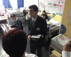 Lunes 5 de agosto: visita a la sala pediátrica oncológica del Hospital Carlos Van Buren. Se desarrolló una presentación musical de los alumnos para los niños hospitalizados. Sir Raúl Núñez, Arts Coordinator, y Miss Lorena Muñoz, CAS Coordinator de II y III Medio, lideraron esta significativa misión.