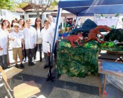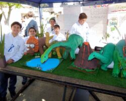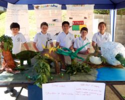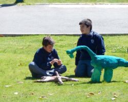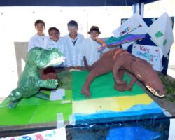 On Friday morning the 6th Grade English Exhibition Dinosaur Museum took place in Patio de La Roca. There were many dinosaur sculptures around the place with all sorts of colours and sizes. The sculptures themselves greatly caught the attention of all visitors. All students did a splendid job in sharing facts about their dinosaurs. The facts were of eating habits, effect on pop culture, habitat and physical features. Everyone enjoyed what the students had to share in English. Overall. this 6th grade exhibition was looked at as one of the best ever done. It was very evident the hard work done by everyone involved, from the way the exhibition was set up, to the way the kids did their presentations. This activity is an interdisciplinary project between the subjects of English and Design, and students worked for about a month to bring their creatures back to life. Congratulations to everyone involved!